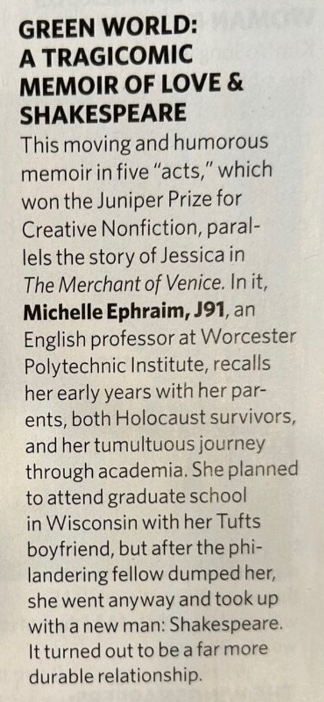 May 2024 LOVE this write-up of GREEN WORLD by my alma mater, Tufts University!